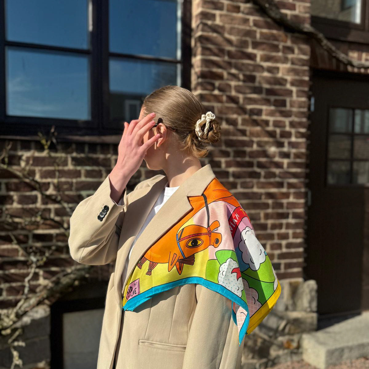 Ukrainsk Trojan Horse dobbeltsidig skjerf i Morus silke. Designet i Ukraina.