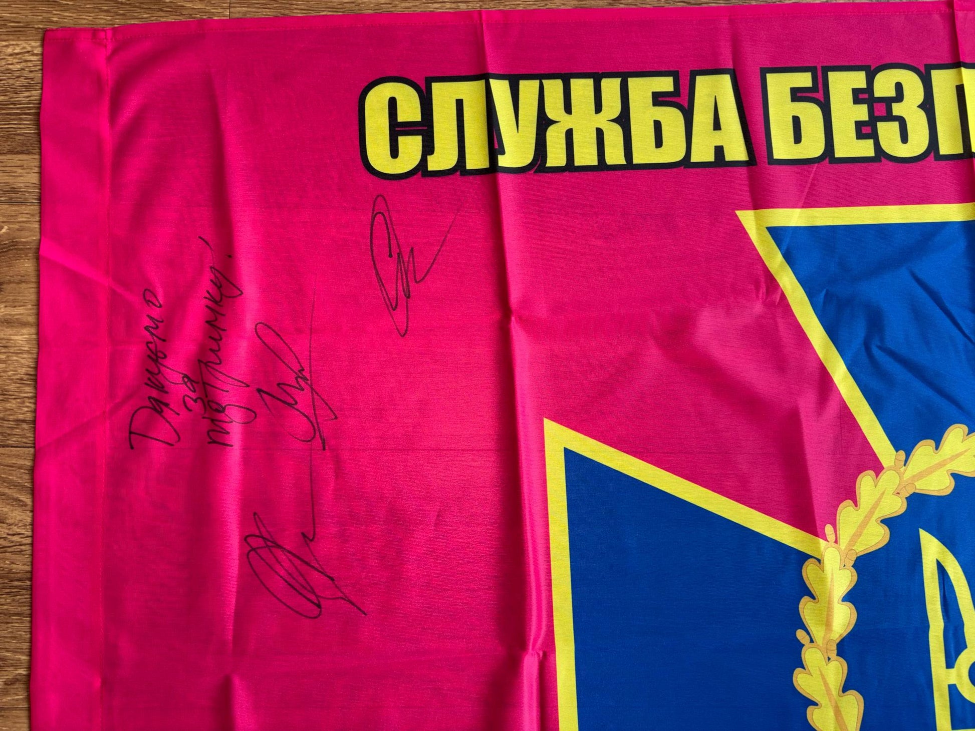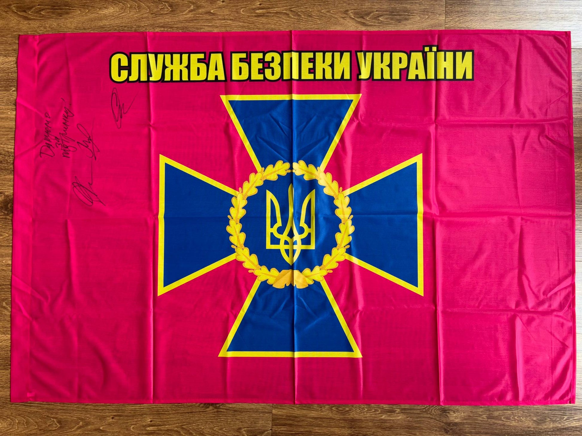 Przekaż darowiznę, aby otrzymać: Flaga SBU - Służba Bezpieczeństwa Ukrainy (z podpisami naszych wojowników)