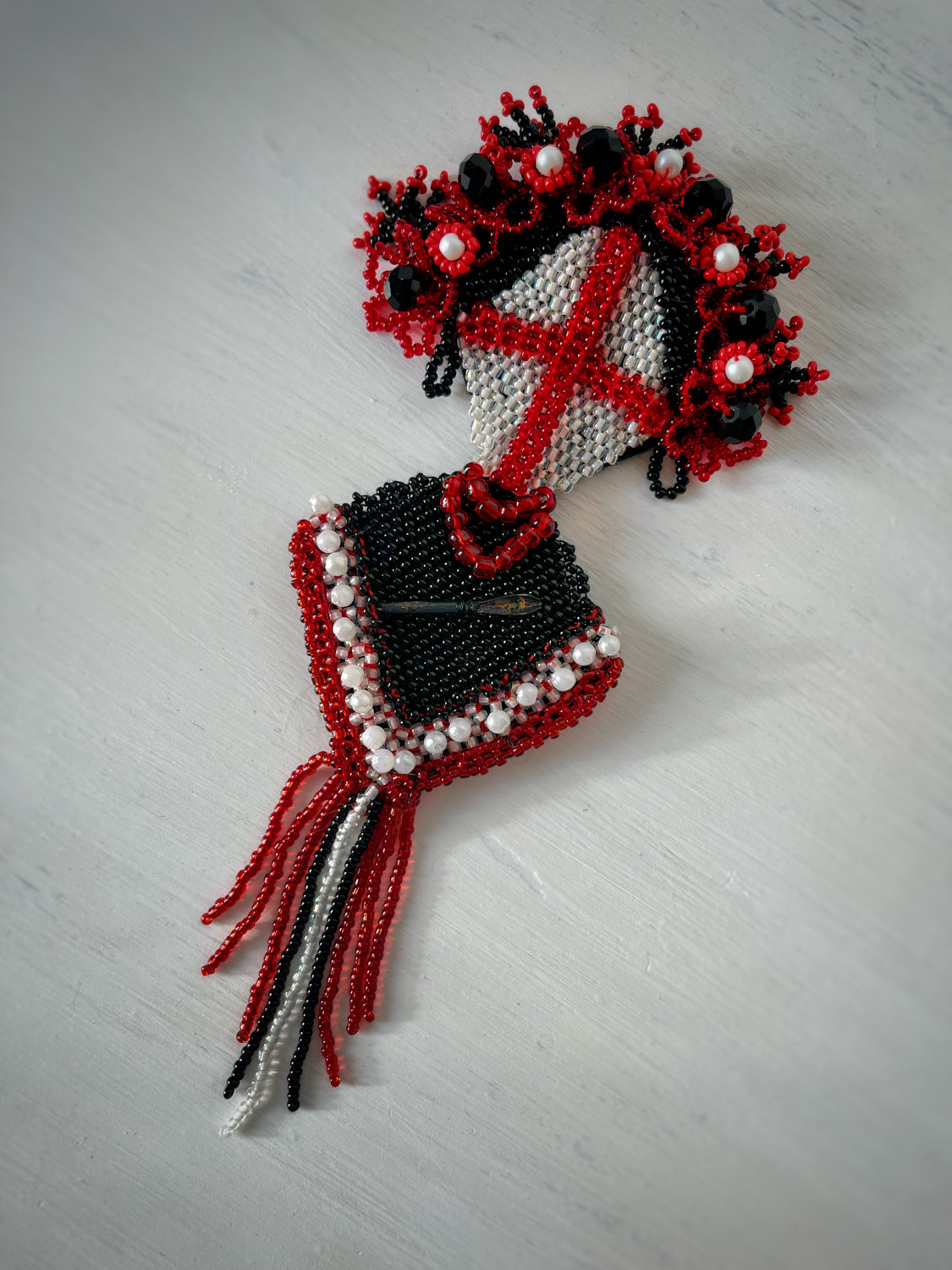 Brooch with fletchette, designed by Ukrainian artist Anna Huliaieva.