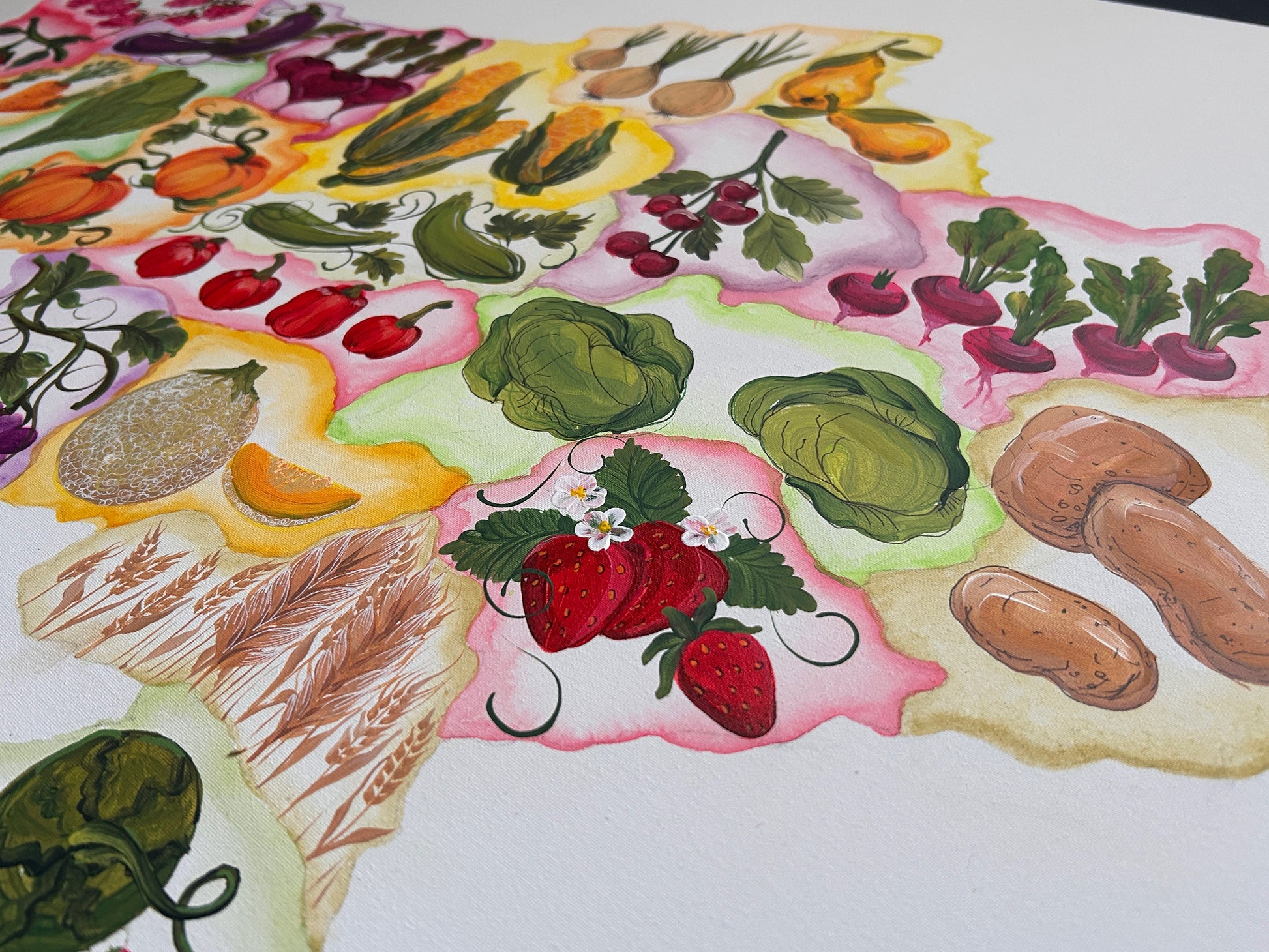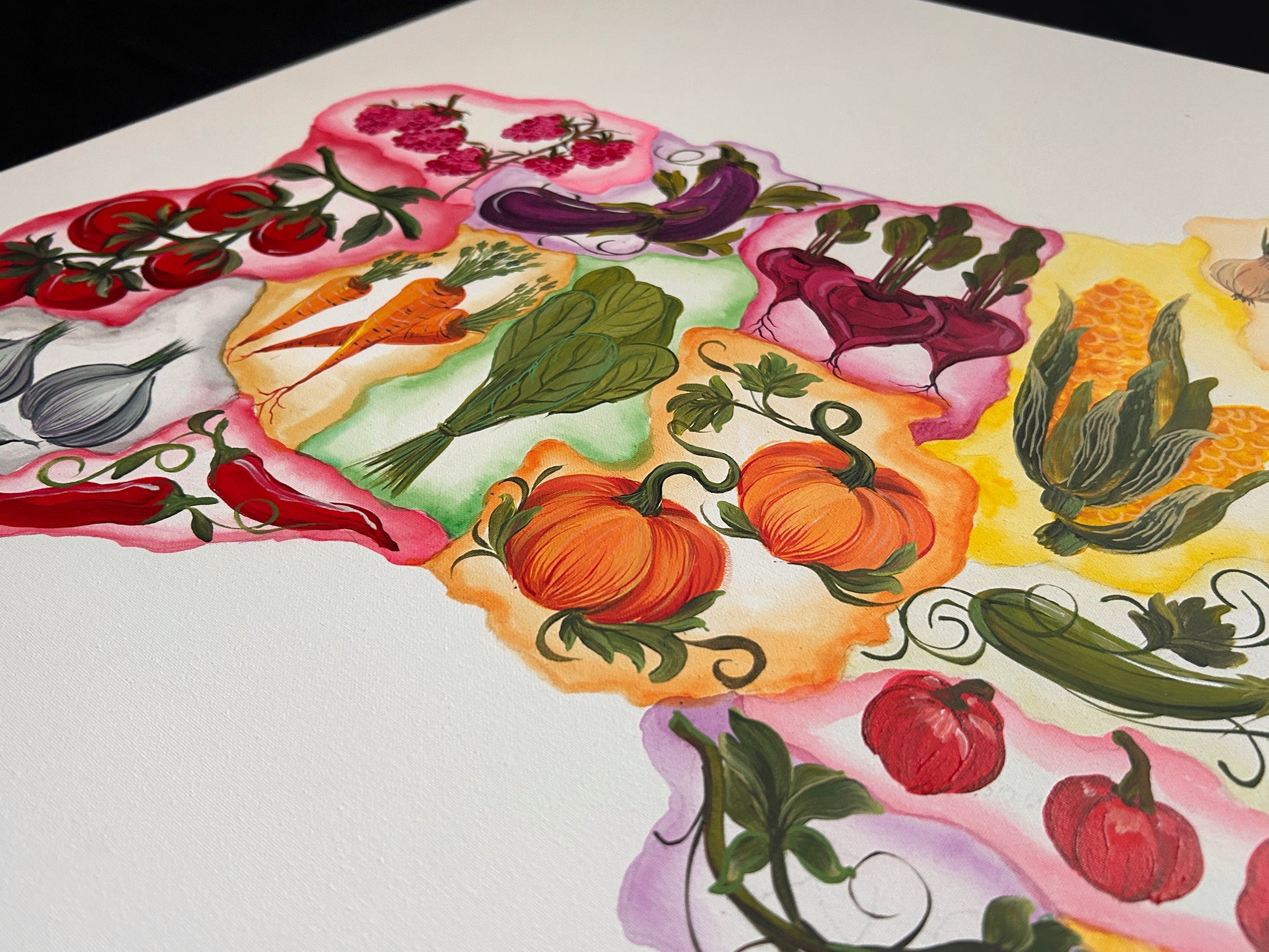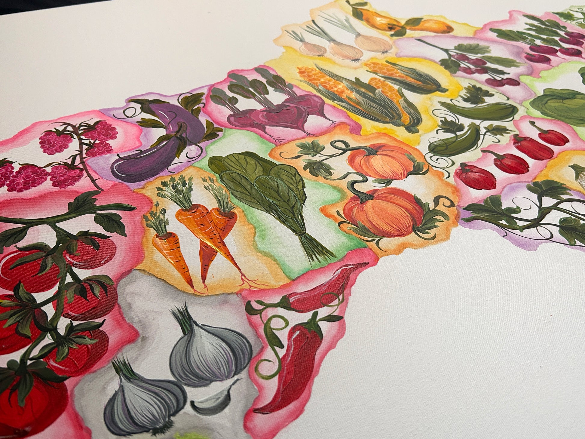 Map of Ukrainian Harvest. Painted on canvas. Created by Anastasia Leonova. You can follow her on https://www.instagram.com/lleonovana.ph/