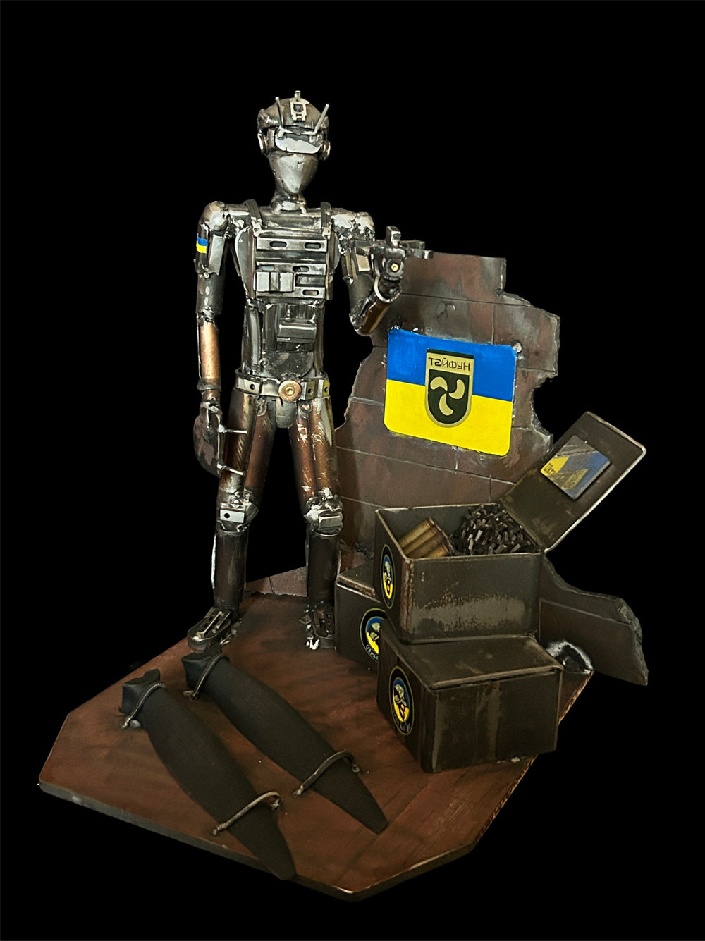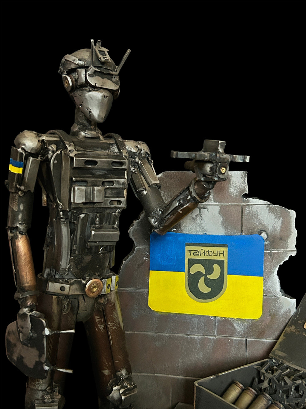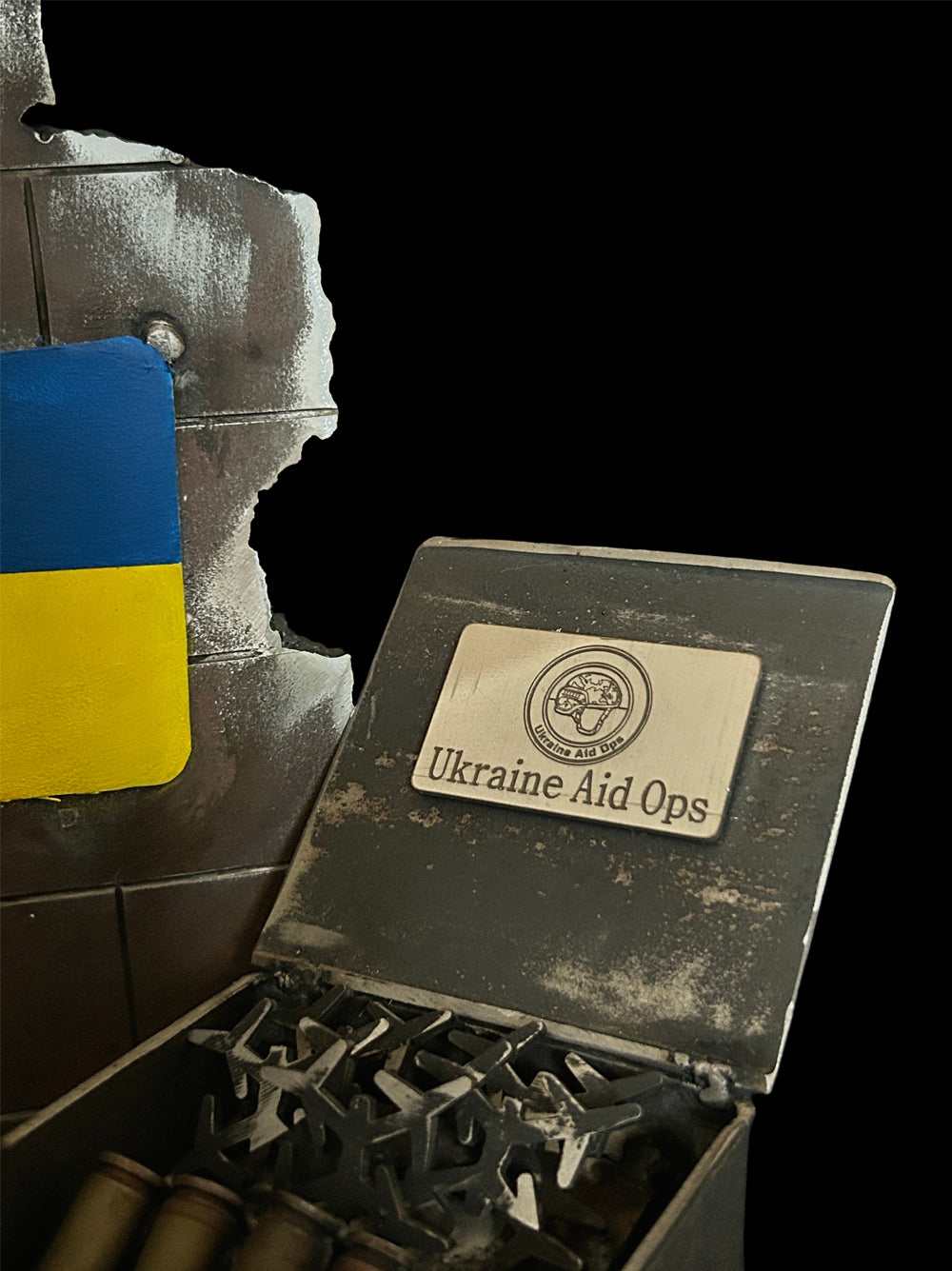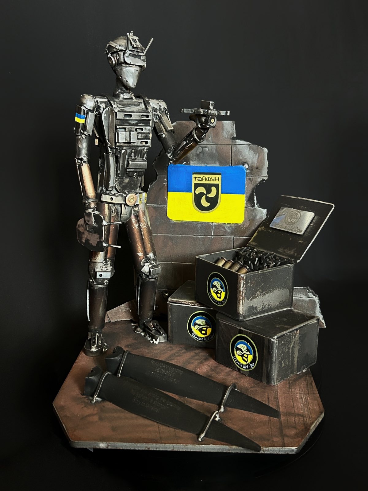 Soldier of Special Forces Unit Typhoon accepting drones supplied by Ukraine Aid Ops. 36x30x25.5 (HxLxW)