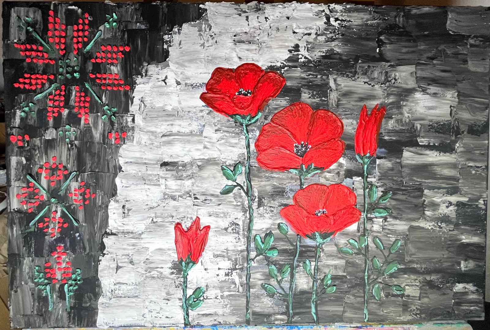 "Poppies". Acrylic and paste on canvas. (40x60cm). (1193 AH)