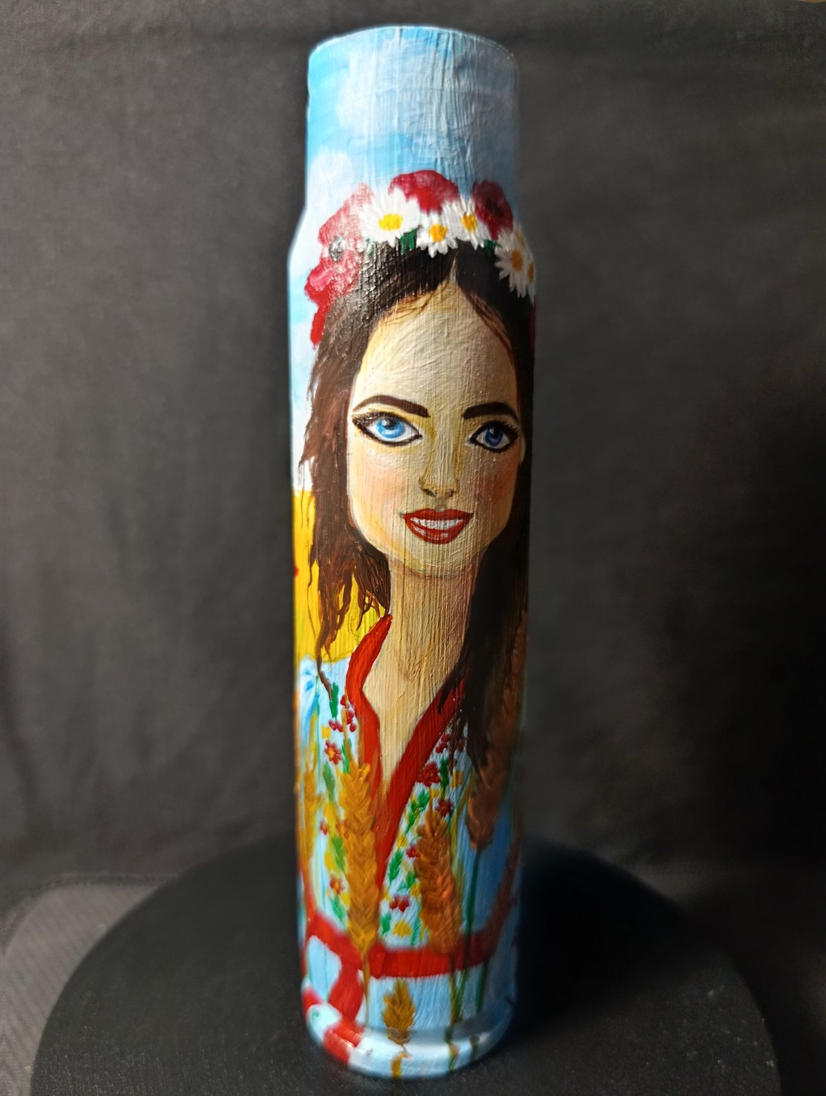 乌克兰女孩绘于30毫米炮弹上。画家:朱莉娅·塞米诺赫。(编号1173)